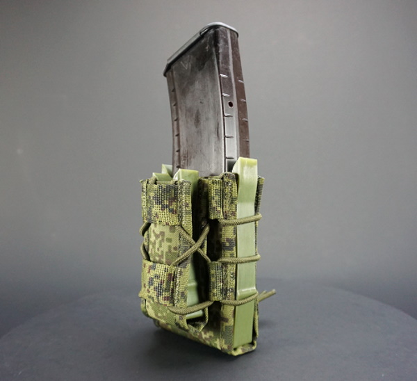Изготовлен из материала нейлон 500D, внутренние рамки из высокопрочного полимера, которая под давлением фиксирует магазины в подсумке, не позволяя им выпасть и не мешает извлечению. Эластичный жгут регулируется и дополнительно фиксирует магазины, защищая их от утери.