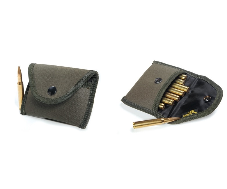 Однорядная патронная сумка закрытого типа из ткани кордура для хранения и транспортировки семи нарезных патронов калибра .30-06, .300 Win Mag, 9.3х62. Крепится с помощью шлейки на поясной ремень. Фиксация патронов в сумке за счёт прорезиненной ленты. Габариты подсумка в застёгнутом состоянии 140 мм (длина) х 80 мм (ширина) х 35 мм (высота). Размеры шлейки: 60 мм (ширина) х 70 мм (длина). Цвет защитный темно-зеленый.