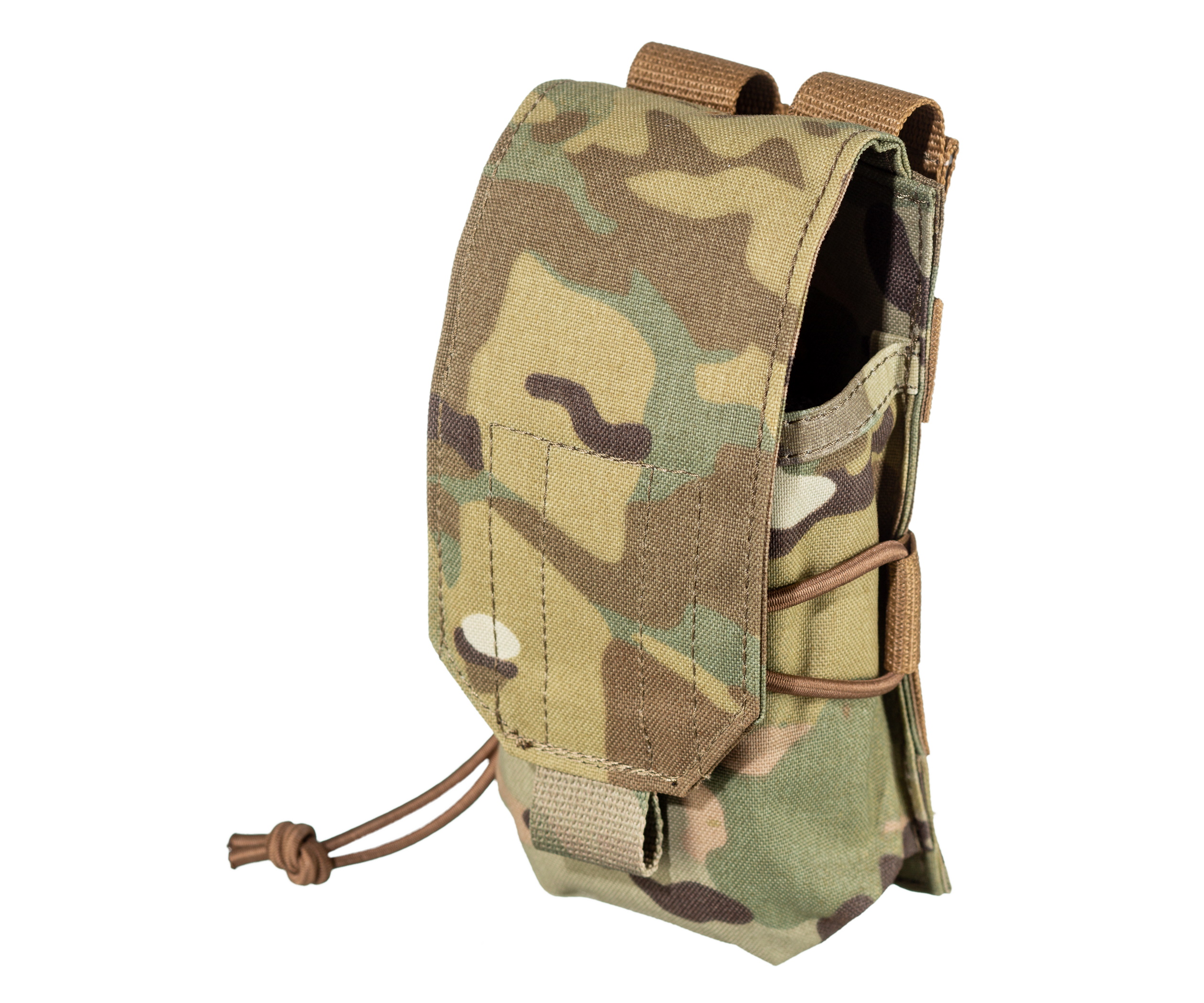 Заправив клапан внутрь подсумка, допустимо его использование как открытого. Возможно размещение на обычном ремне. Доступен в различных цветах, данный вариант в камуфляжном цвете.
