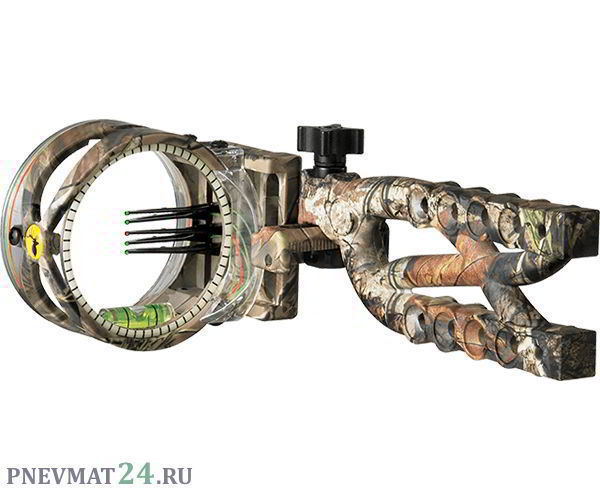 Прицел Cypher 5 Micro Camo для луков блочной конструкции из баллистического полимерного материала – легкого и прочного, отлично гасящего вибрации при спуске тетивы. Прицел оснащен микрорегулировочным механизмом в вертикальной и горизонтальной плоскости. Разметка на ободе нанесена фосфоресцирующим составом, что делает ее видимой даже в сумерках. Также прицел снабжен уровнем для контроля смещения лука относительно лини горизонта.
