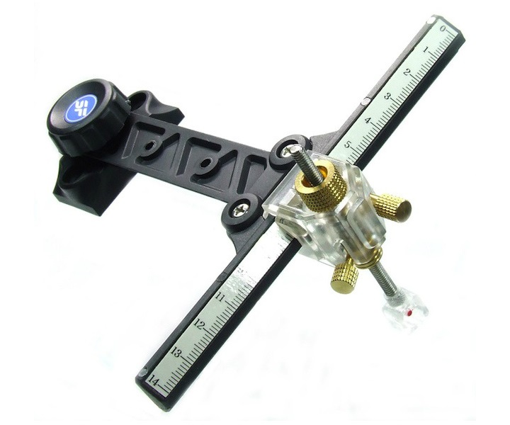 Универсальный прицел пластиковый для спортивных классических луков с регулируемой по выносу прицельной ппланкой.