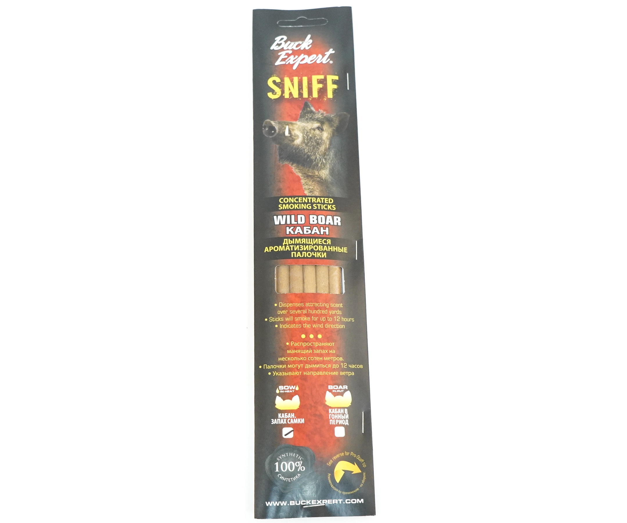 Приманка для кабана Buck Expert 51LSSYN в виде дымящихся палочек (синтетическая смесь). Синтетический ароматизатор выделений самки кабана, имитирует запах мочи, половых выделений, феромонов и мускуса возбужденной самки кабана и оказывает очень сильное привлекающее воздействие на кабанов.