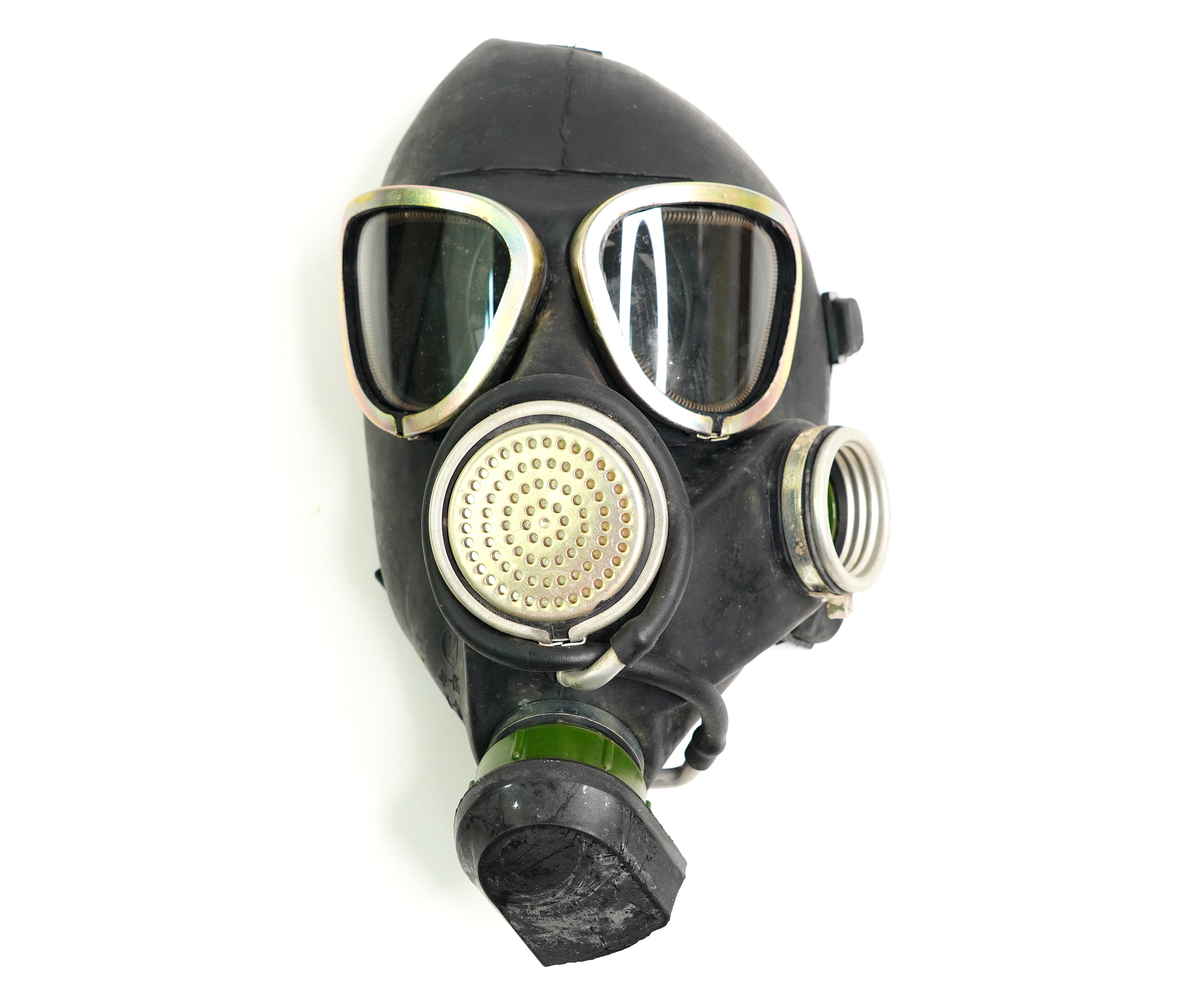 Противогаз ПМК-1, с высокой степенью защиты и повышенным комфортом в ношении. Военная версия гражданского противогаза типа ГП-7. Особая конструкция больших стекол, значительно увеличивает угол обзора. Маска противогаза снабжена устройством для приема воды.