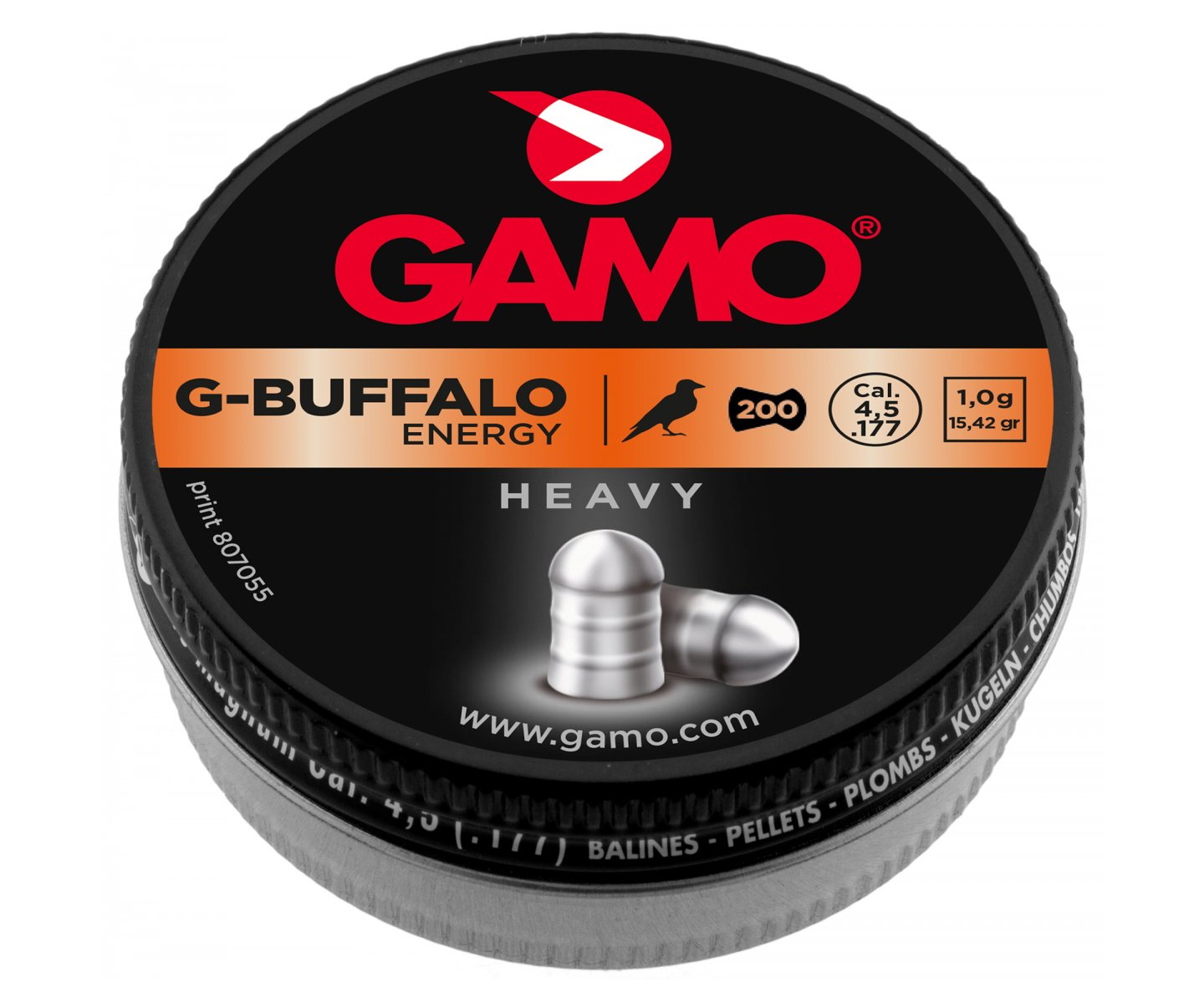 Gamo G-Buffalo предназначены для спортивной стрельбы и охоты на средних и дальних дистанциях. Количество пуль в банке — 200 штук средним весом 1,0 грамм.