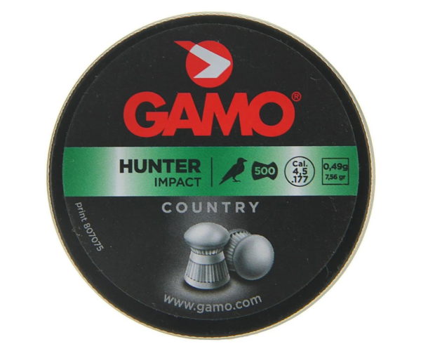 Gamo Hunter 4,5 мм для пневматики предназначены для развлекательной и спортивной стрельбы по мишеням. Количество пуль в банке — 500 штук средним весом 0,49 грамм. Отлично рассчитанный центр тяжести пули; головная часть имеет круглую поверхность, благодаря этому пули остаются в потоке воздуха и мало отклоняются от прямой траектории и набирают максимальную скорость.