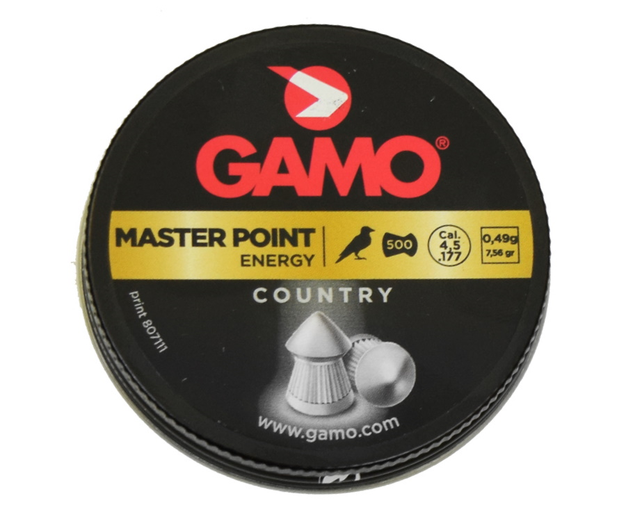 Gamo Master Point подойдет как для развлекательной стрельбы по банкам, так и для охоты на мелкую дичь. Количество пуль в банке — 500 штук средним весом 0,49 грамм. Головная часть имеет острую (pointed) поверхность.