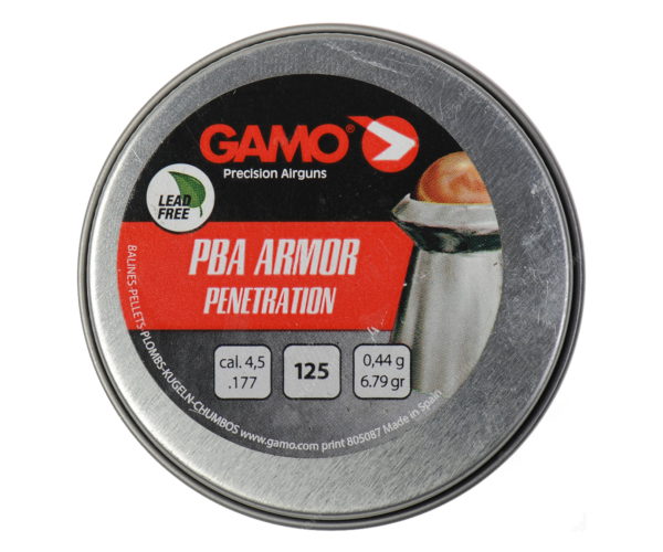 Пули Gamo PBA Armor для пневматики калибра 4,5 мм — это комбинированная пуля, состоящая из свинца и стали. В отличии от «обычной» свинцовой пули, PBA Armor обладает сверхвысокой пробивной способностью.