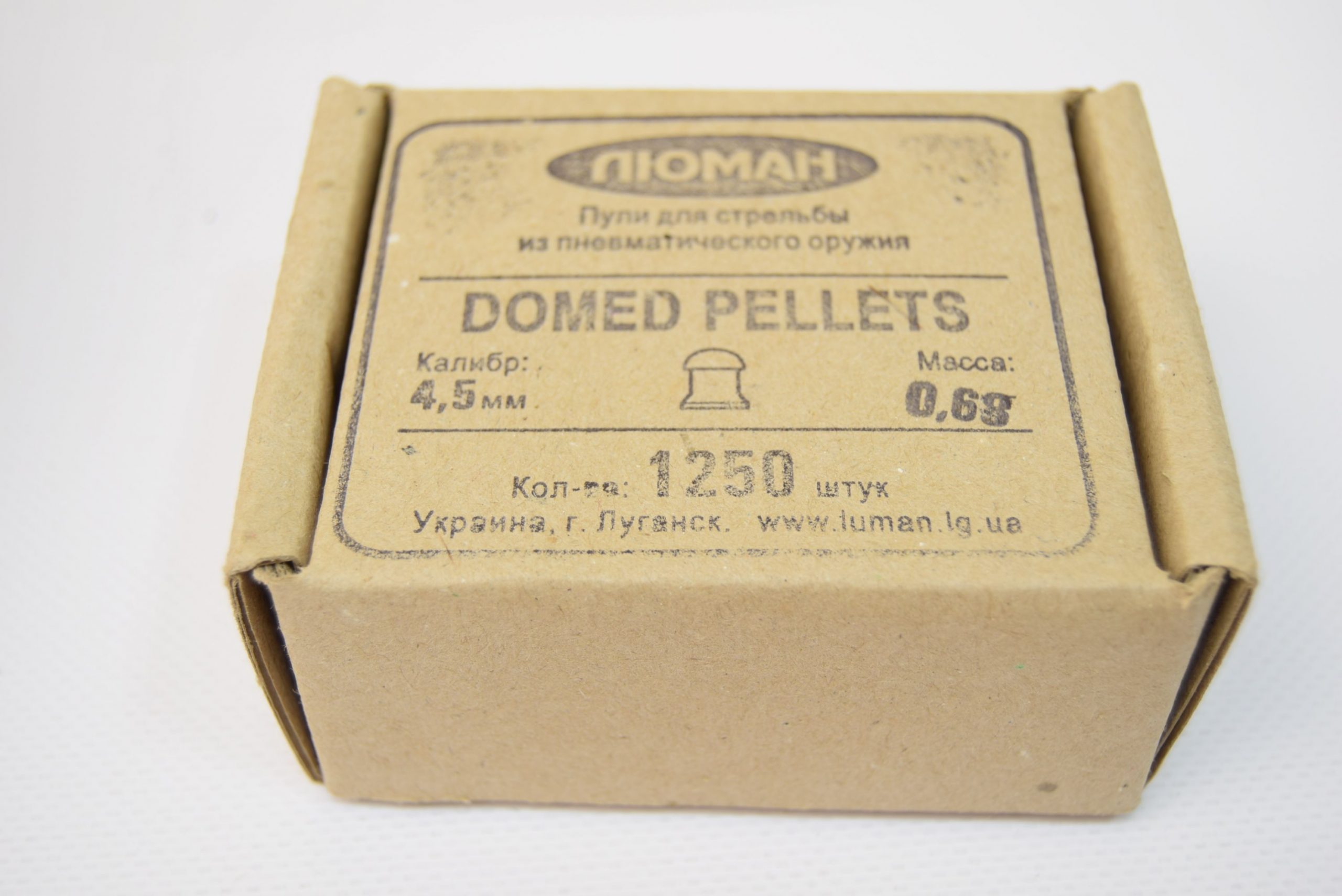 Пули Люман Domed Pellets 0,68 г — утяжеленные круглоголовые пневматические свинцовые пули. Штампованные, поверхность гладкая. Предназначены для развлекательной стрельбы и field target на дистанциях до 25 метров. Калибр — 4,5 мм. Упаковка — картонная коробка 1250 шт.