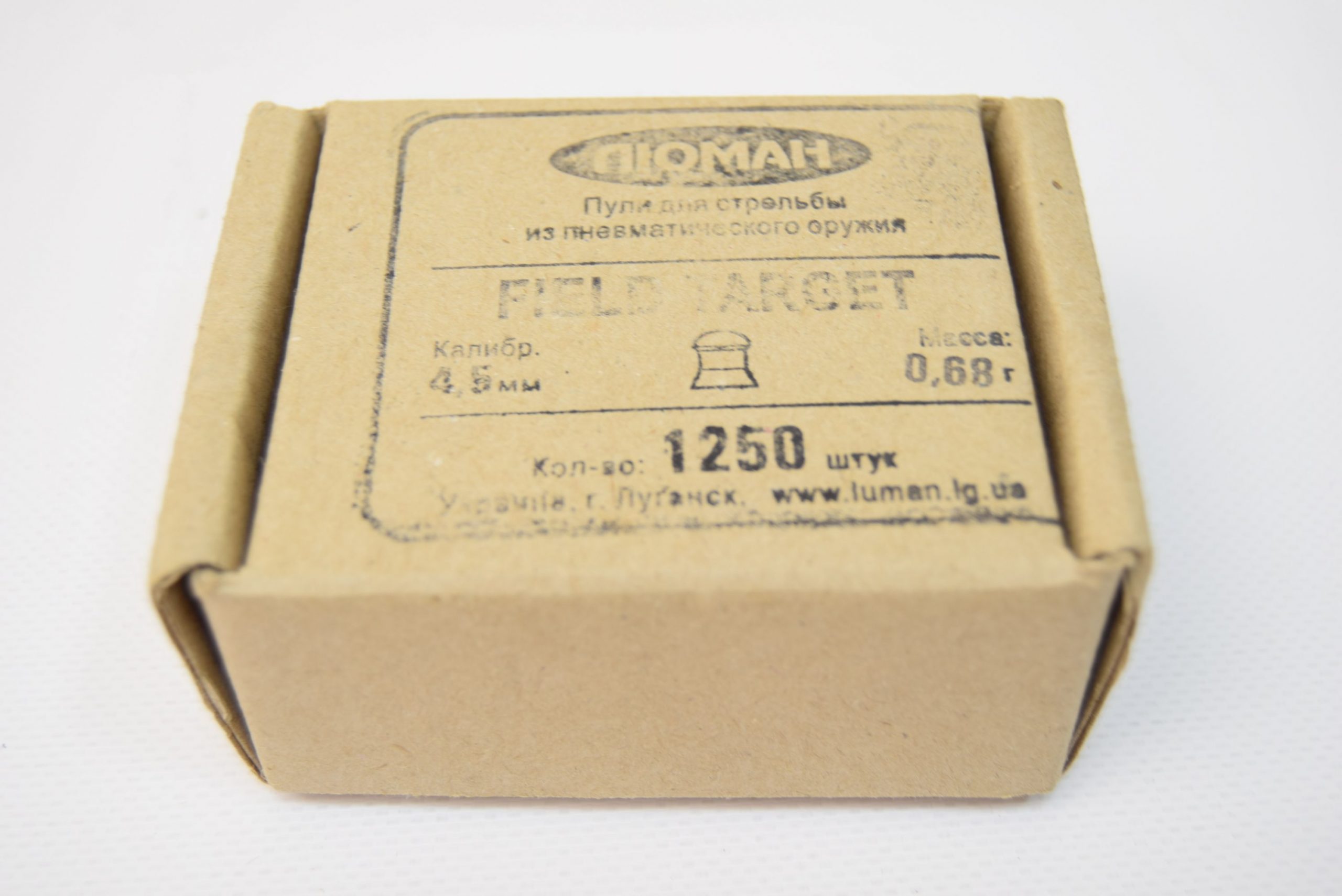 Пули Люман Field Target 0,68 г — круглоголовые свинцовые пули утяжеленные, прекрасные аэродинамические показатели. Предназначены для развлекательной стрельбы, охоты и field target на дистанциях до 50 метров. Калибр — 4,5 мм. Упаковка — картонная коробка 1250 шт.