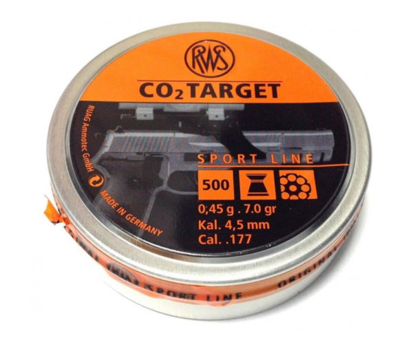 Пули RWS CO2 Target для пневматики калибра 4,5 мм — легкие тренировочные пули с плоской головной частью. Отлично подходят для стрельбы по бумажным мишеням, так как оставляют на них ровные круглые отметины. Это проверенные пули для тренировочной стрельбы, демонстрирующие прекрасное соотношение цена-качество. Пули в количестве 500 штук средним весом 0,45 грамм.