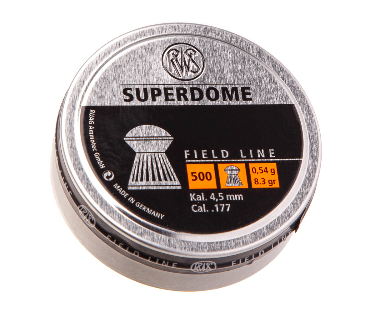 Пули RWS Superdome калибра 4,5 мм — это свинцовые пули средней тяжести с закругленной головкой. Конструктивные особенности обеспечивают высокую пробиваемость и проникающую способность. Пользуются популярностью при стрельбе на охоте из пневматических винтовок. Пули весят 0,54 грамм, в упаковке 500 штук.