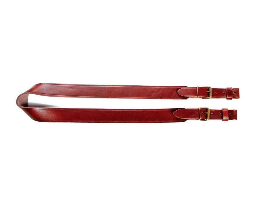 Ремень из натуральной кожи шириной 30 мм, толщиной 3 мм. Длина ремня регулируется пряжками от 780 мм до 930 мм. Антабки отсутствуют. Ширина ремешков крепления на антабку 20 мм, толщина 2 мм. Конструкция скреплена заклепками.