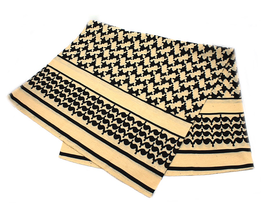 Маскировочный шарф-арафатка – недорогой и удобный аксессуар для участника страйкбола. При использовании отлично защищает шею от холода и ветра, а также от случайных попаданий страйкбольных боеприпасов. Материал – полиэстер. Изделие имеет комбинированный черно-белый (White/black) абстрактный рисунок в восточном стиле.