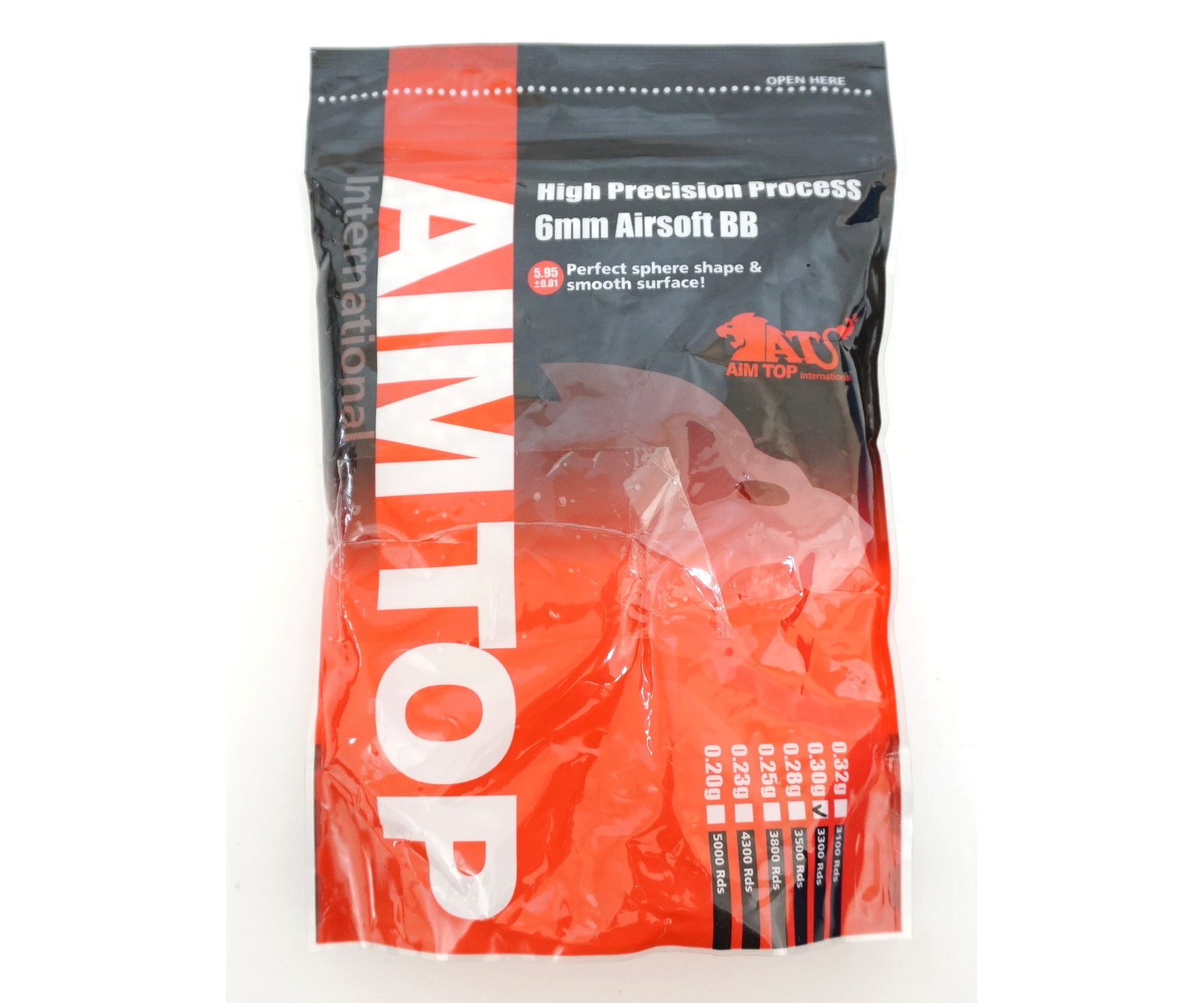 Тяжелые шары Aim Top калибра 6 мм, белого цвета, с массой 0,30 грамм отлично подходят для стрельбы из страйкбольных пистолетов и приводов. В пакете примерно 3300 штук.