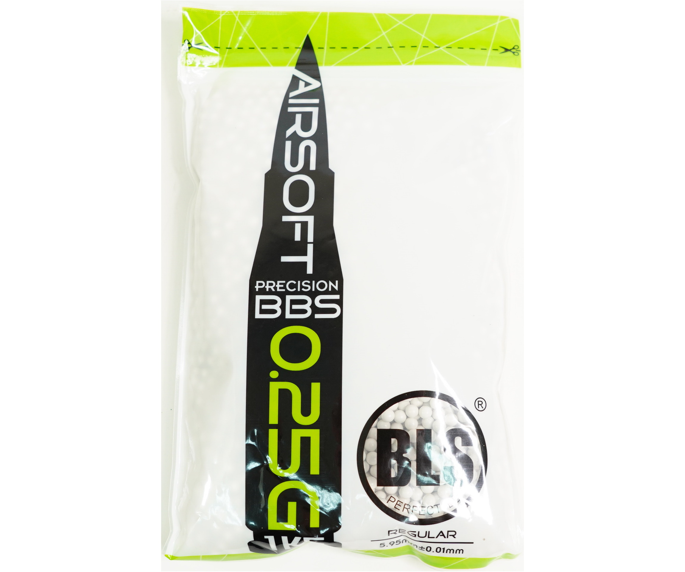 Пластиковые качественные шарики калибром 6 мм BLS Precision grade весом 0,25 граммов предназначены для стрельбы из страйкбольных пистолетов и винтовок. В упаковке — 4000 штук, 1 килограмм. Диаметр 5,95 мм, погрешность в диаметре этих шариков составляет всего 0,01 мм.