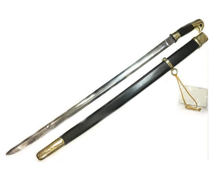 Шашка не заточена, но ее можно заточить самостоятельно, сталь высокого качества, долго держит заточку. Ножны изготовлены из дерева, латуни и натуральной кожи.