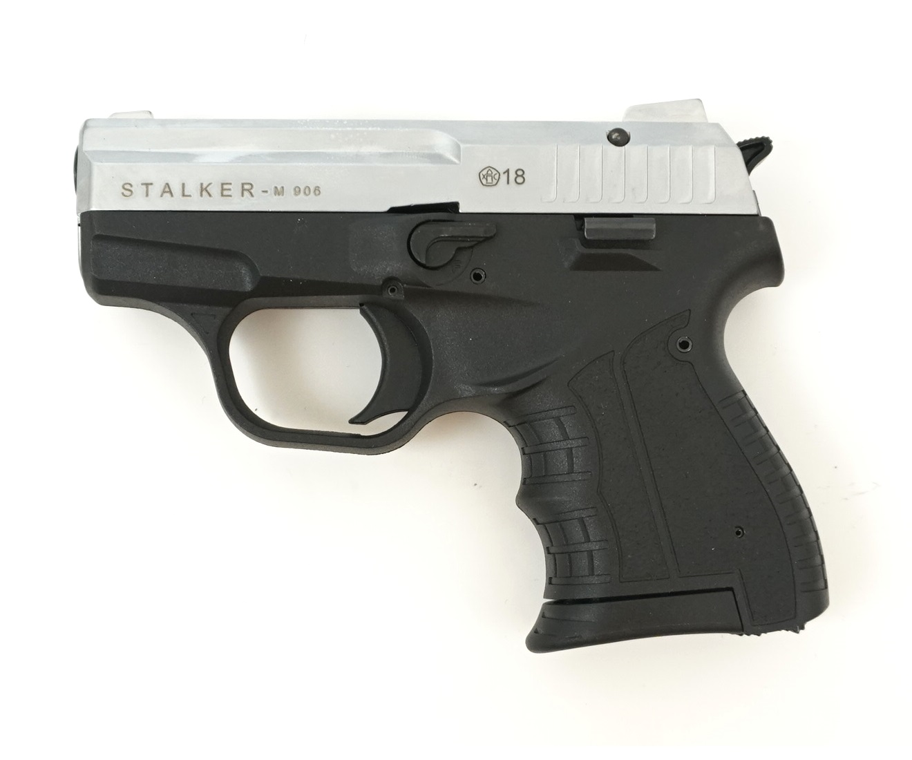 Сигнальный пистолет Stalker 906 (хром) способен стрелять и самовзводом, и в полуавтоматическом режиме. В качестве прототипа использован травматический пистолет 9 P.A. В качестве источника энергии выступает светошумовой патрон 5.6 мм. Магазин пистолета вмещает 9 патронов Hilti, однако производитель для увеличения срока эксплуатации модели рекомендует заряжать не более 6 патронов Хилти коричневого цвета. Ракеты из такого пистолета способны вылетать на высоту 30-35 метров.