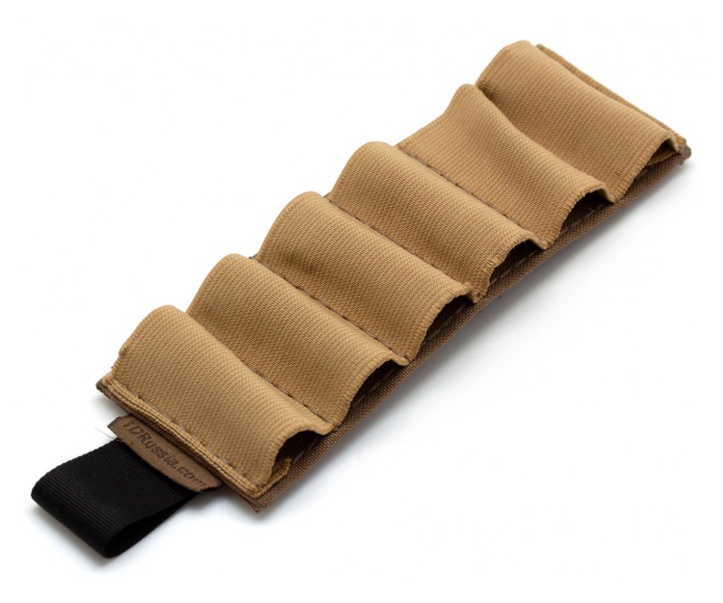 Патронташ Долг для хранения и транспортировки 6 патронов 12-го калибра, цвета койот. Плотная резинка, шириной 40 мм пришита с определенным шагом для фиксации патронов разного калибра.