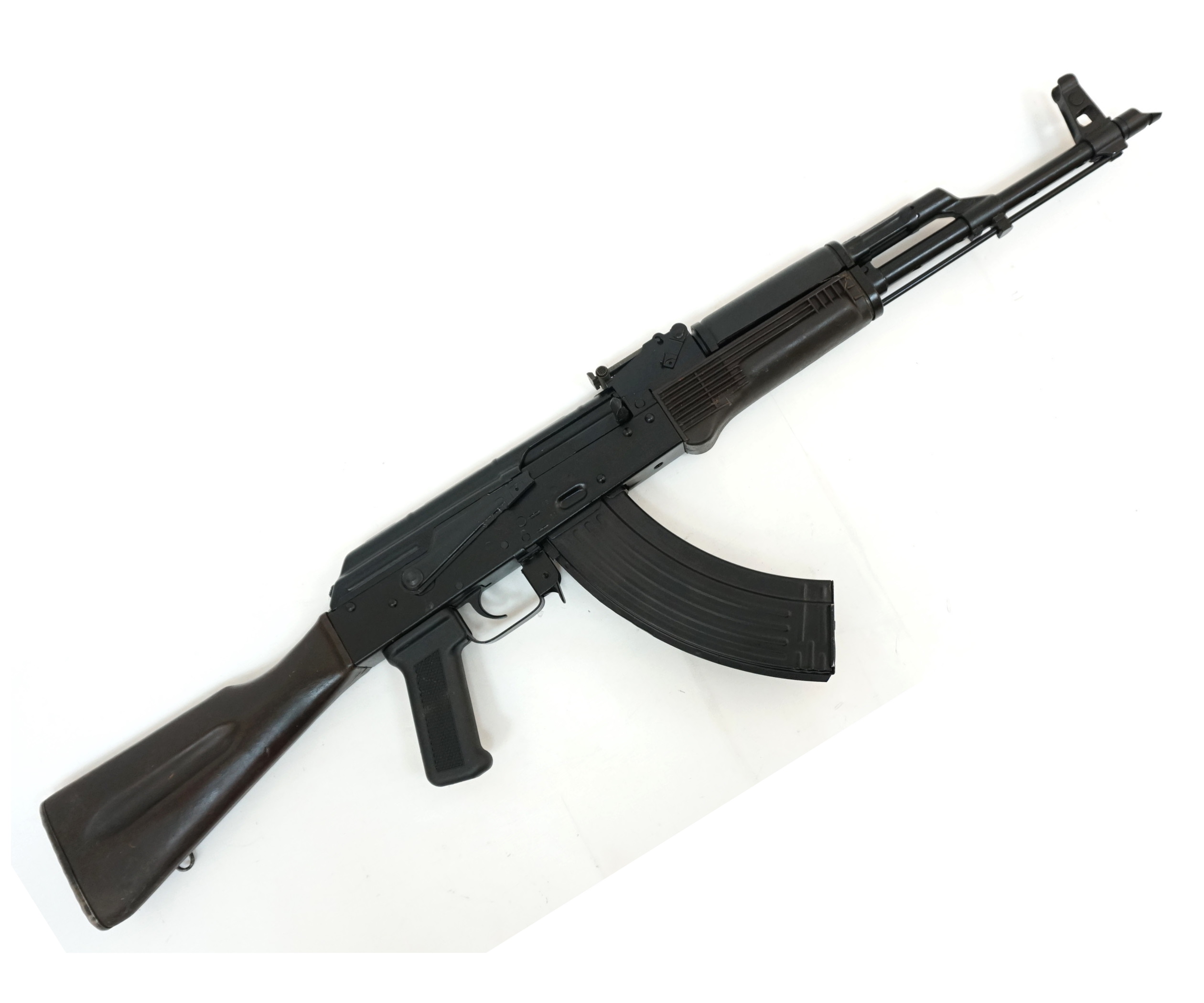 Списанный учебный автомат Калашникова АКМ (ВПО-911) – это сходное с боевым образцом изделие, конструкция которого исключает возможность ведение стрельбы. Переделка данного образца в учебный произведена на заводе «Молот-Армз», ВПО-911. АКМ – модификация, разработанная в 1959 году на базе автомата Калашникова. В отличие от предшественника, АКМ получил ряд конструктивных доработок, направленных на повышение прицельной дальности и кучности стрельбы, а также на уменьшение общего веса оружия. АКМ комплектовался универсальным штык-ножом. Данная разработка в вооруженных силах СССР заменила АК и СКС. Производили АКМ на Ижевском машиностроительном заводе.