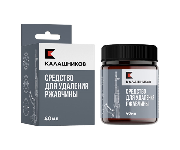 Средство для удаления ржавчины Калашников — профессиональное средство для удаления очагов коррозии на любых металлических поверхностях оружия. Легко наносится на наклонные и вертикальные поверхности, не стекает. Улучшает адгезию лакокрасочных покрытий и грунтов. Объем 40 мл.