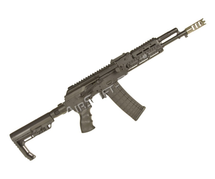 Имеется планка Пикатинни для установки оптики, расположенная сверху ствольной коробки. Благодаря оснащению привода KeyMod-цевьем стрелок может использовать оружие с дополнительным обвесом. Длина автомата со сложенным прикладом – 79 см, максимальная длина 88 см. Весит привод 3,5 кг, комплектуется аккумулятором с ЗУ, магазином с комплектом шариков, шомполом и документами.