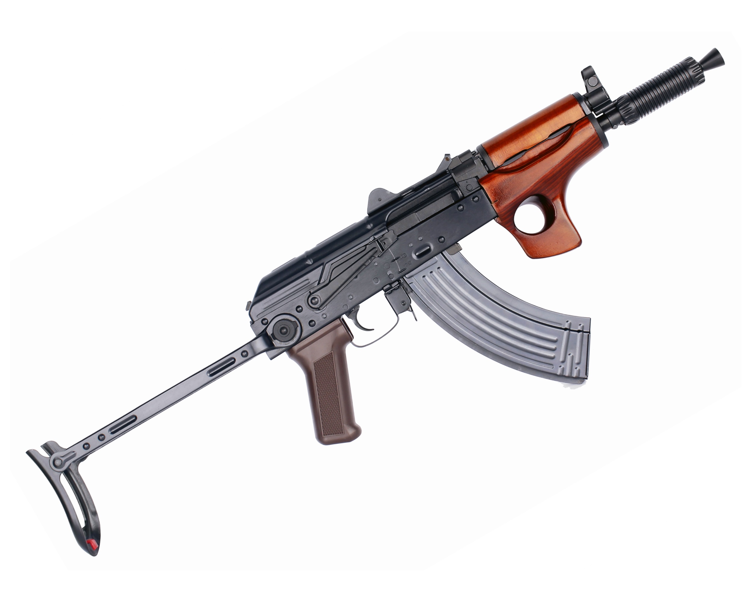 Страйкбольный автомат E&L АКМС-У Gen.2, дерево (EL- A113-A) – это компактный, качественный и надежный привод от известного производителя, точная копия знаменитого АКМС-У. Привод отличается полным отсутствием люфтов и точным сходством с прославленным огнестрельным прототипом.