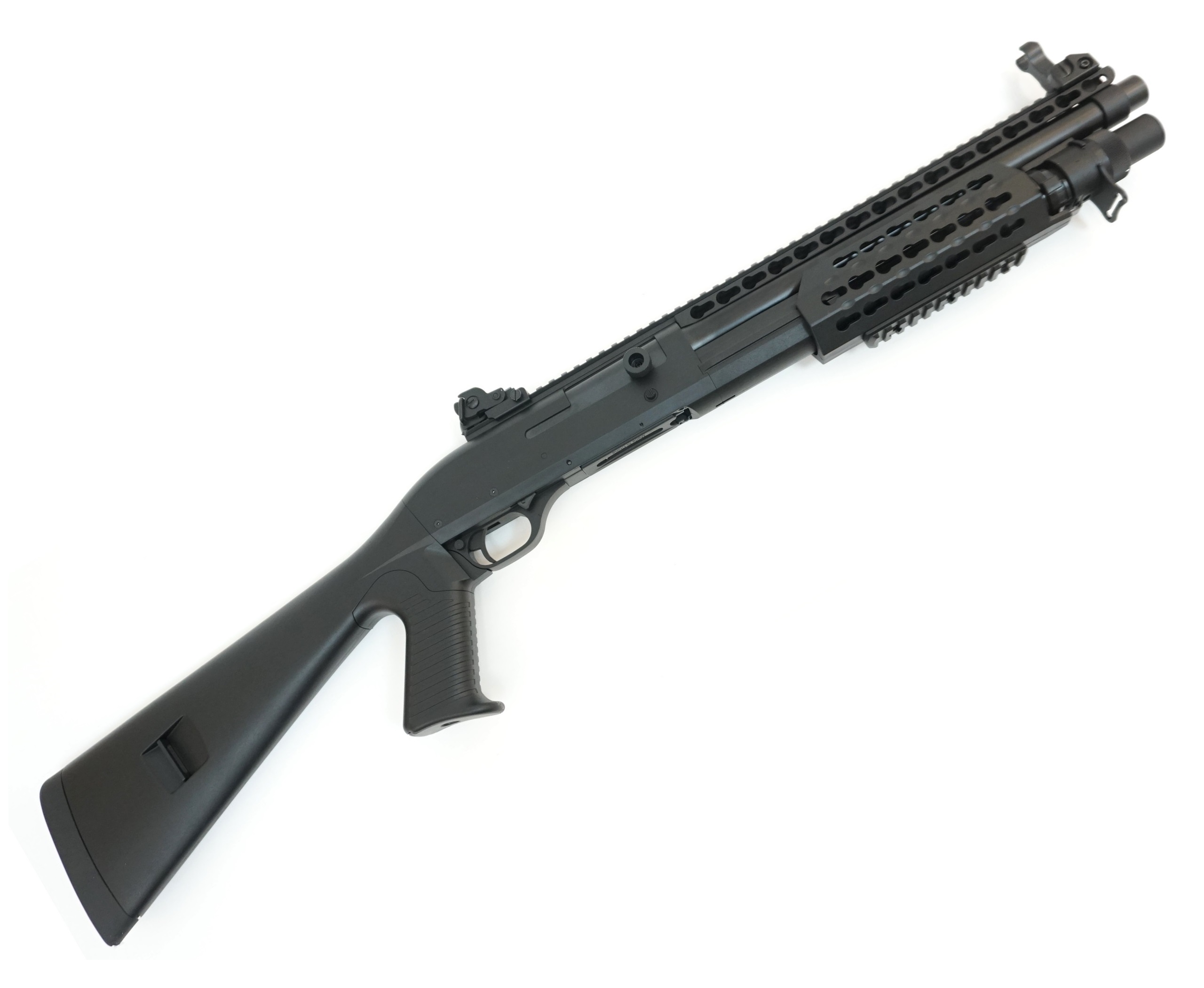 Модель отличается наличием складного диоптра, а также KeyMod цевья, позволяющего оснащать дробовик любым обвесом. Оружие отличается качественной сборкой. Общая длина модели 90 см, вес 2,4 кг. Поставляется дробовик в комплекте с ускорителем заряжания, тремя шеллами, шомполом, ВВ-шариками и инструкцией пользователя.