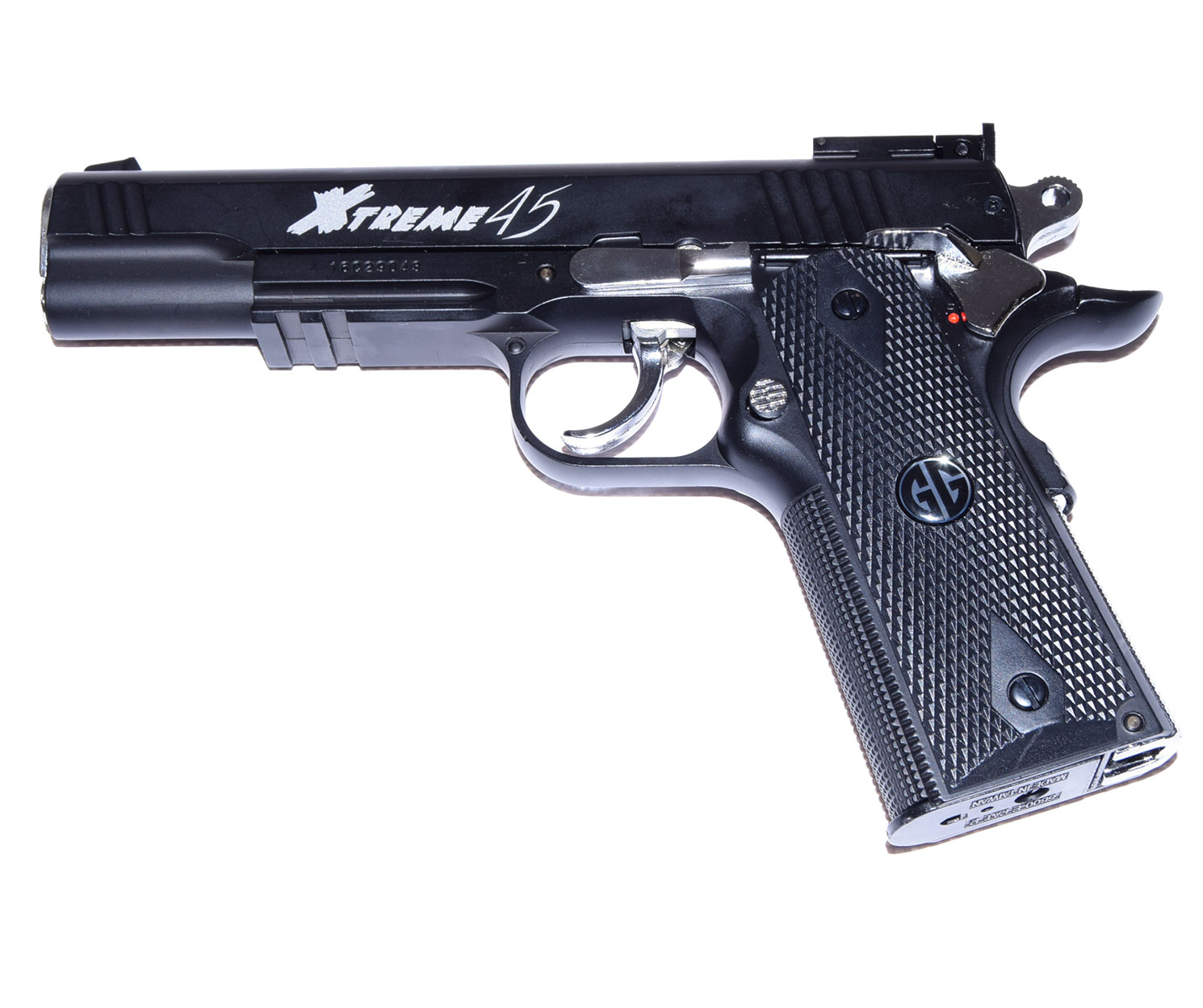 G&G 1911 Xtreme 45 по принципу действий представляет собой гладкоствольный, газобалонный страйкбольный пистолет, работающий от 12-граммовых баллончиков с газом CO2. Его дульная энергия составляет до 3 Дж, что обеспечивает полет шарику, весом 0,2 г со скоростью 120 м/сек на вылете из дула, издавая достаточно громкий звук. При этом пистолет оснащен магазином на 15 шариков калибром 6 мм.
