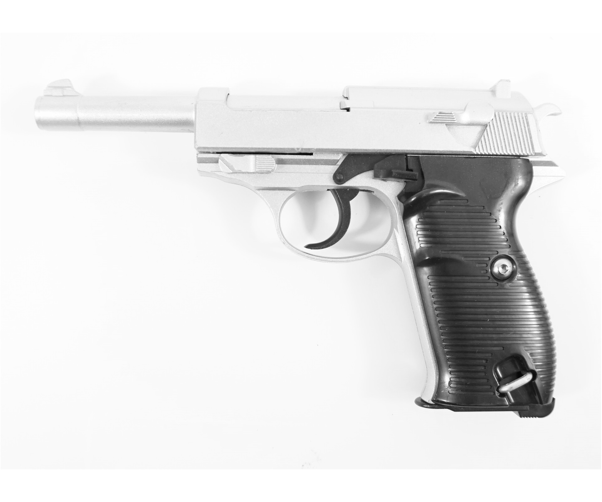 Пистолет страйкбольный Galaxy G.21S Walther P38 Silver представляет собой копию своего боевого прототипа — Walther P.38, который производится в Германии, изготовленную специально для игры в страйкбол. Будучи выполненным из оцинкованного металла и пластика, модель Galaxy G.21 тайваньского производства является более легкой, чем оригинал, тем не менее, полностью повторяет внешние характеристики настоящего пистолета, оставаясь абсолютно безопасной его копией.