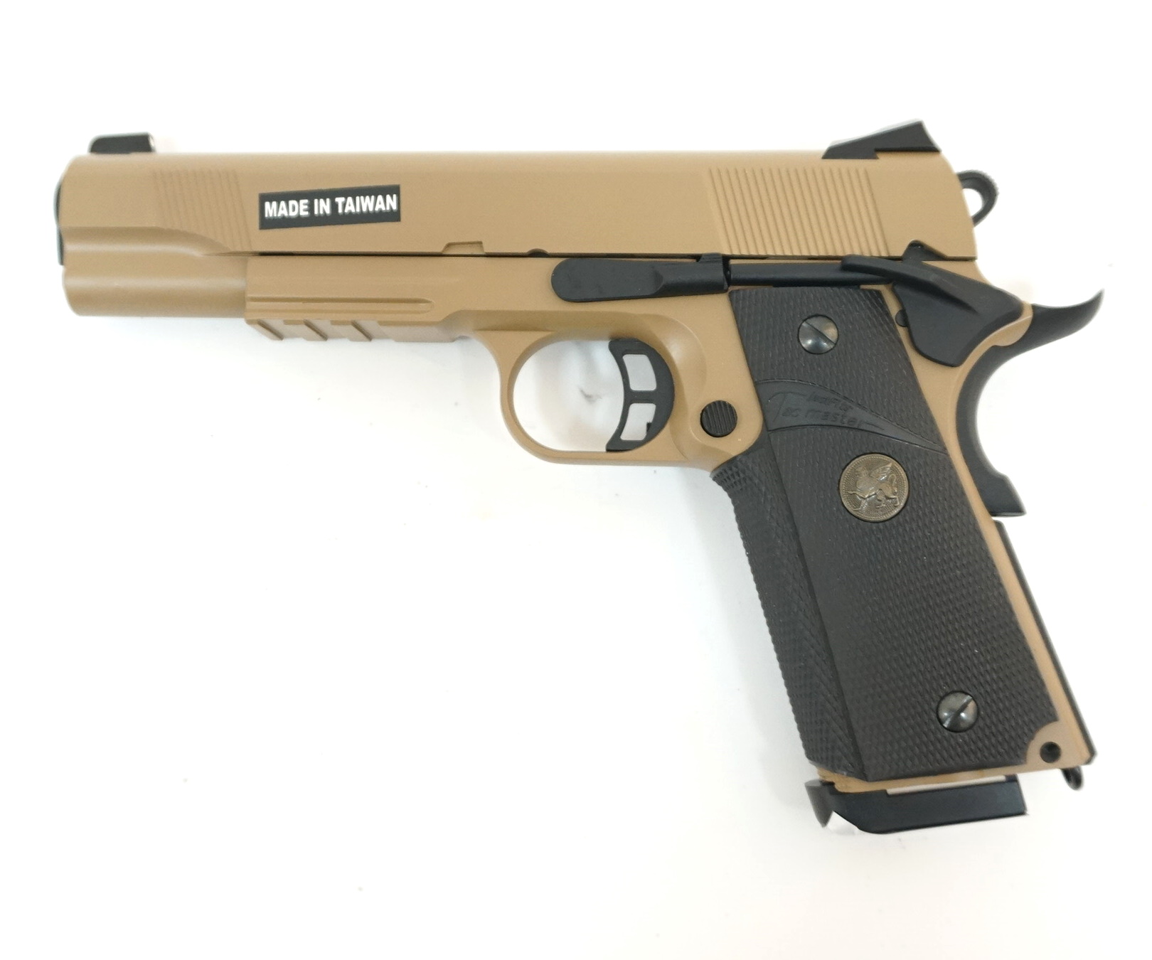 Описание страйкбольного пистолета KJW Colt M1911 M.E.U. GBB Gas TAN:
