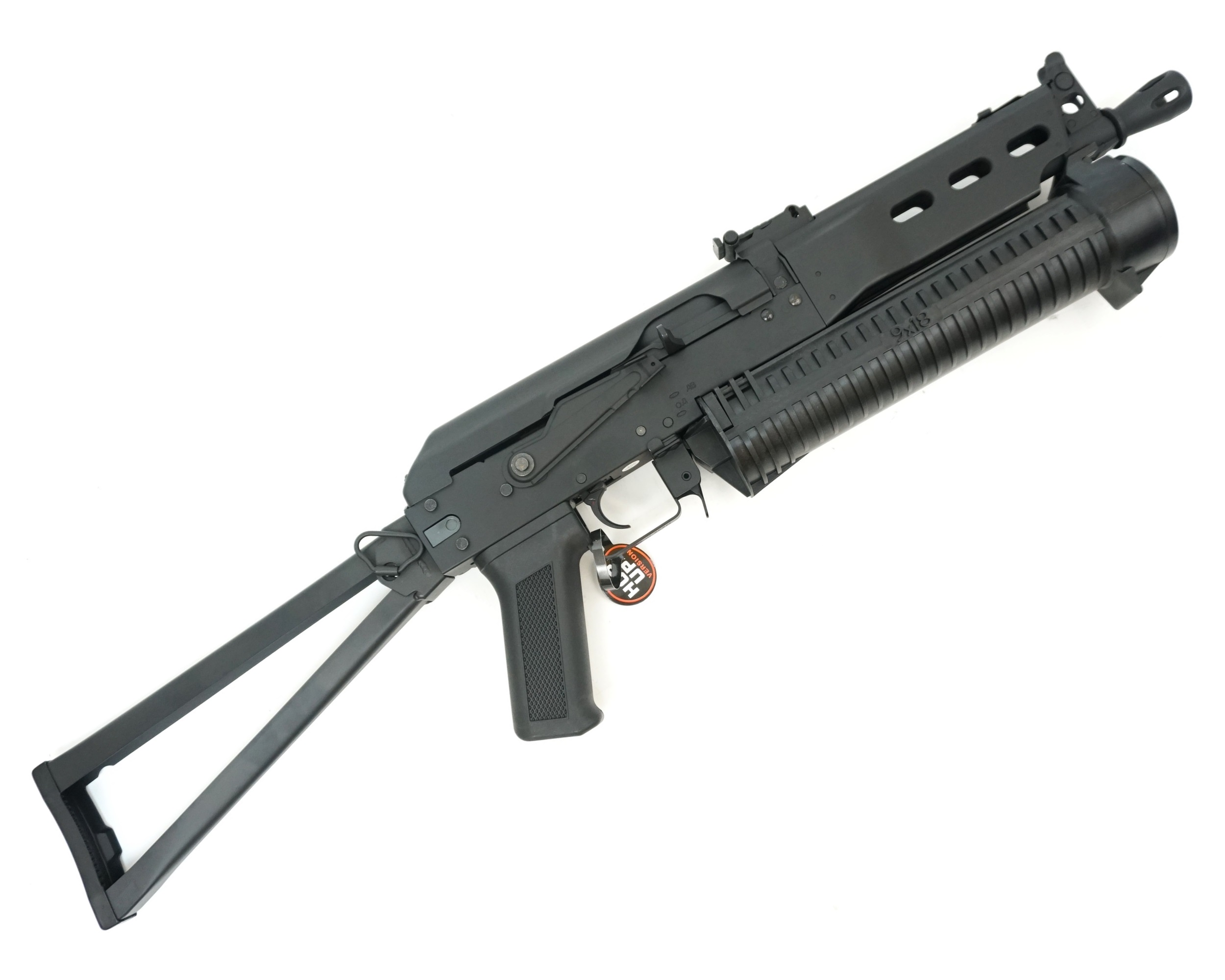 В данной модификации используется надежный и простой гирбокс третьей версии, с хорошей ремонтопригодностью, он получает энергию от аккумулятора NiMH напряжением 8,4V и емкостью 1200 mAh, АК-type, место его расположения в данной модели – отсек под крышкой ствольной коробки. Хоп-ап регулируемый, позволяющий настроить дальность и кучность выстрелов. Используется механический магазин повышенной емкости – на 160 пластиковых шаров 6 мм.