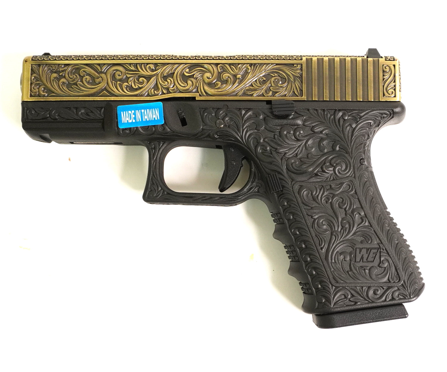 Описание страйкбольного пистолета WE Glock-19 gen3, с гравировкой: