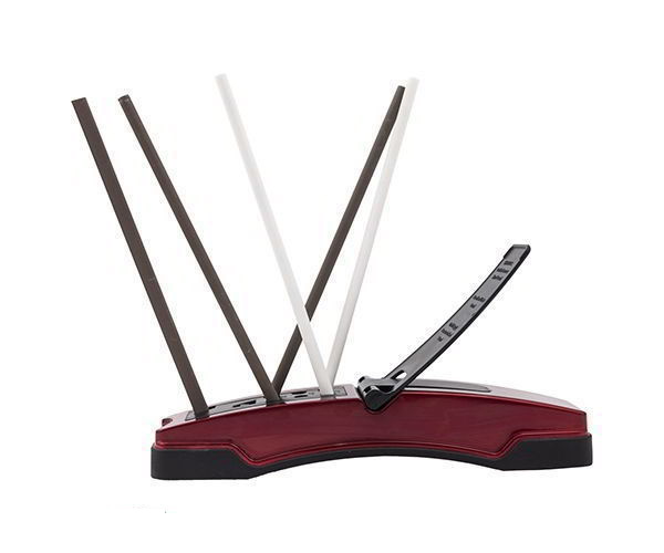 - стержень с мелкозернистостью, выполнен из керамики (сделан в белом цвете) он помогает добиться отличной полировки для режущего лезвия кромки — их 2 штуки;