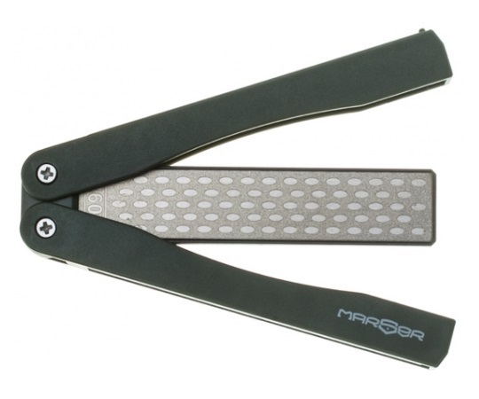 Marser MSH-1 — это практичная точилка, которая производится в Китае. Она имеет небольшие размеры и может храниться дома, в коттедже, в деревне или на даче, ее нетрудно взять в поход или засунуть в автомобиль. Точилка хороша тем, что она очень легко складывается, у нее есть две рабочих поверхности, которые имеют текстурное напыление с применением алмазов. Чтобы воспользоваться грубой заточкой, необходимо пользоваться поверхностью с надписью 360#. Маркировка с номером 600# необходима для проведения тонкой доводки на клинок.