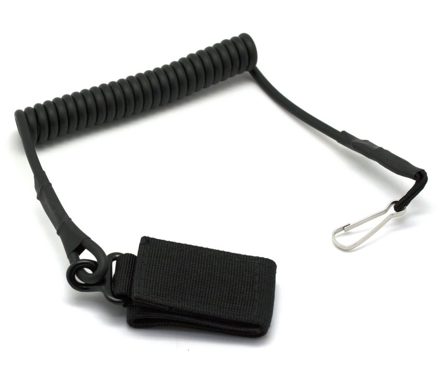 Тренчик пистолетный витой, страховочный, совместимый со всеми типами тактических и поясных ремней. Крепление: карабин и петля на липучке.