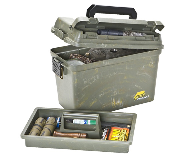 Ящик Plano 161200 предназначен для транспортировки и хранения боеприпасов, охотничьих принадлежностей и аксессуаров с лотком для мелких предметов. Он снабжен прорезиненной эргономичной ручкой.