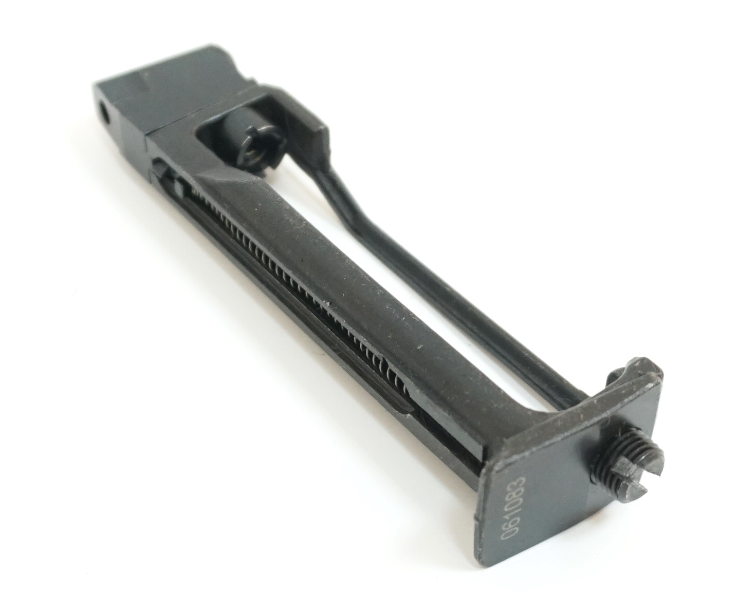 Запасной магазин для пневматических пистолетов МР-654К без пропила (без проточки) отечественного производства (не подойдут для пистолетов старых выпусков). Магазин надежный, полноразмерный — с газовым клапаном и отсеком для расположения баллончика CO2. Предназначен для заряжения 13 шариками ВВ, калибра 4,5 мм и служит дополнительной обоймой.
