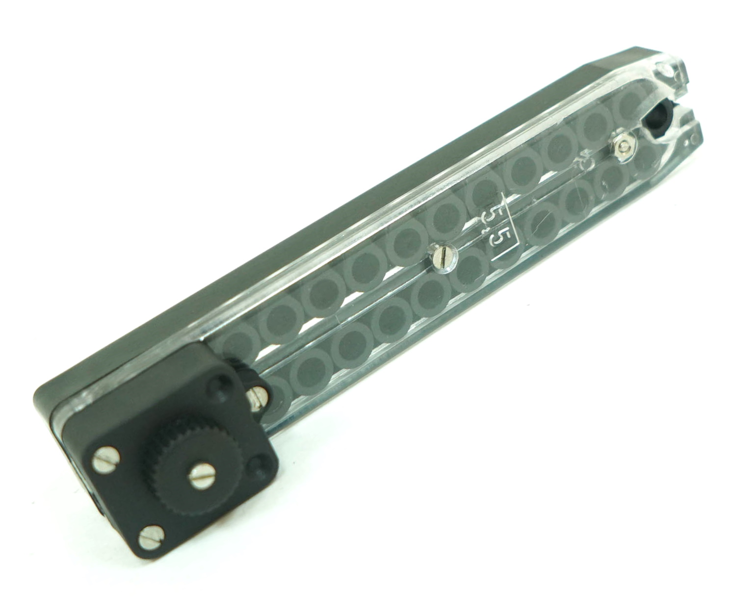 Дополнительный магазин роторной конструкции под полнотелые пули для пневматического пистолета Cardinal. Предназначен для заряжания свинцовами пулями калибра 5,5 мм, вместимость составляет 28 пуль.