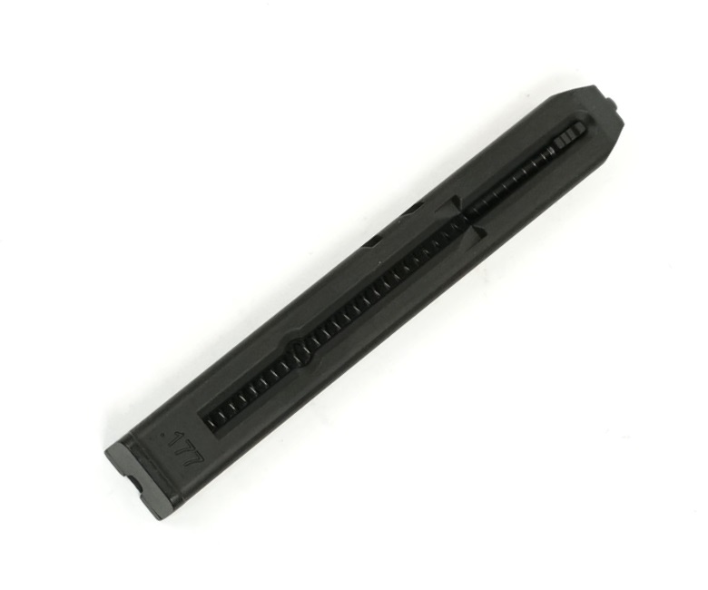 Запасной магазин для пневматического пистолета Gamo GP-20 – металлический, предназначен для заряжания стальными шариками калибра 4,5 мм газобаллонных пистолетов Gamo GP-20, вместимость составляет 20 шариков.