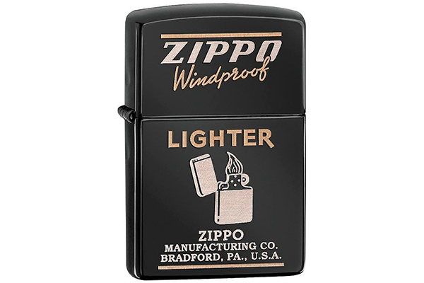 Цвет корпуса: чёрный, изображение — зажигалка + логотип Zippo