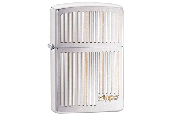 | Цвет корпуса: | серебристый, изображение — вертикальные полоски + логотип Zippo |